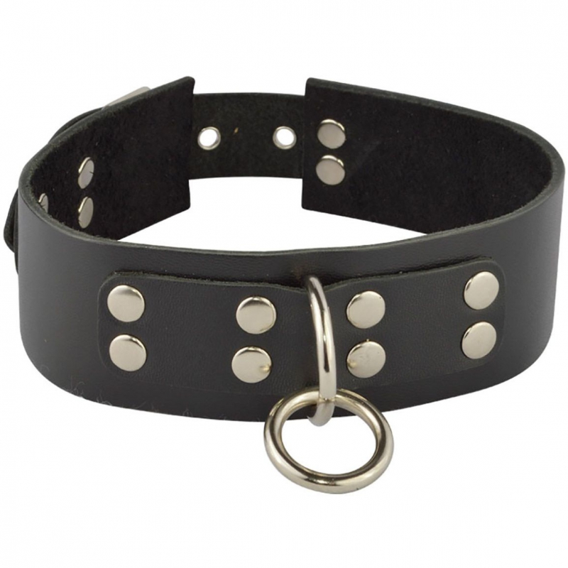 Ошейник с металлическими клепками и широким кольцом "Sitabella" поражает своим брутальным внешним видом!