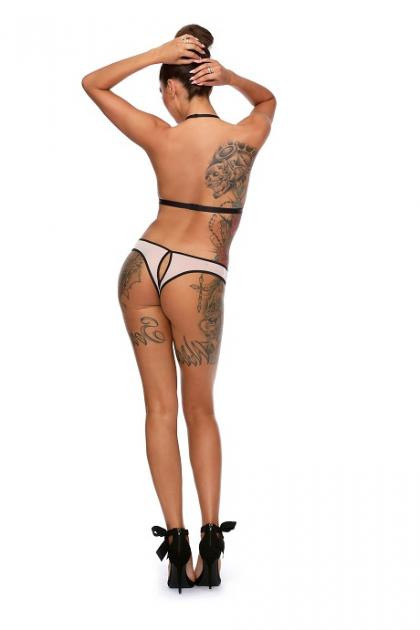 Выполнено боди в виде имитации топа и трусиков. Лиф выполнен из эластичных лент в виде портупеи, поверх которой полупрозрачный материал... Пикантные вырезы и открытые бока и спинка выглядят мега сексуально!