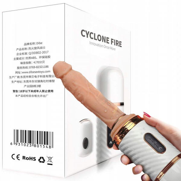 Секс машина с подогревом "Dibe Cyclone Fire" на дистанционном управлении, белый тубус